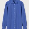 Shirt with a soft rounded collar, front closure, internal cotton voile plastron detail and embroidered crest for numbering. Pointed back yoke and rounded hem. Classic fit. Crafted from yarn-dyed pure cotton jacquard. Made in Italy.