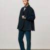 Loose-fit five-pocket boyfriend trousers, straight cut, ankle length with frayed hems. Made from comfort Prince of Wales velvet. Made in Italy.