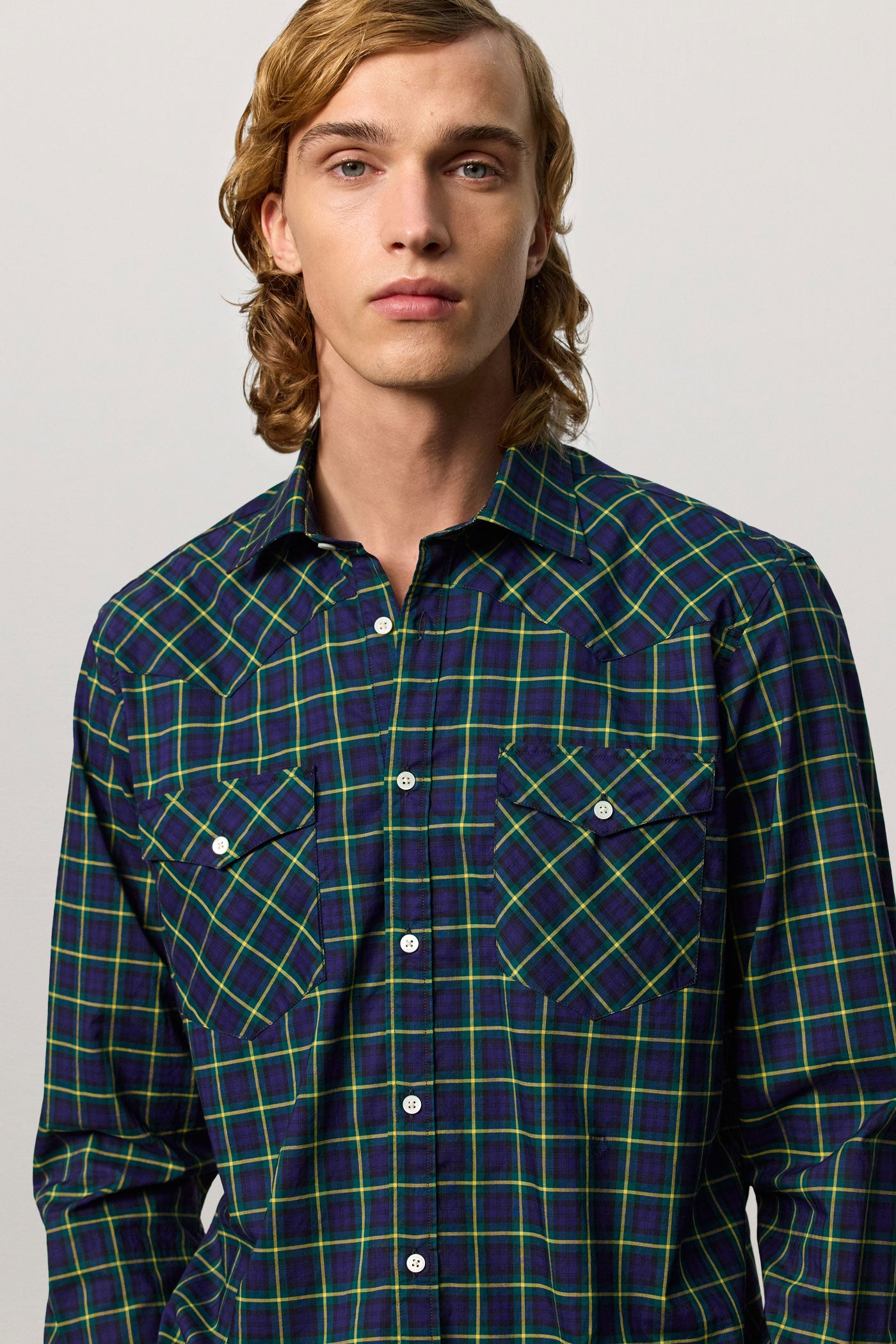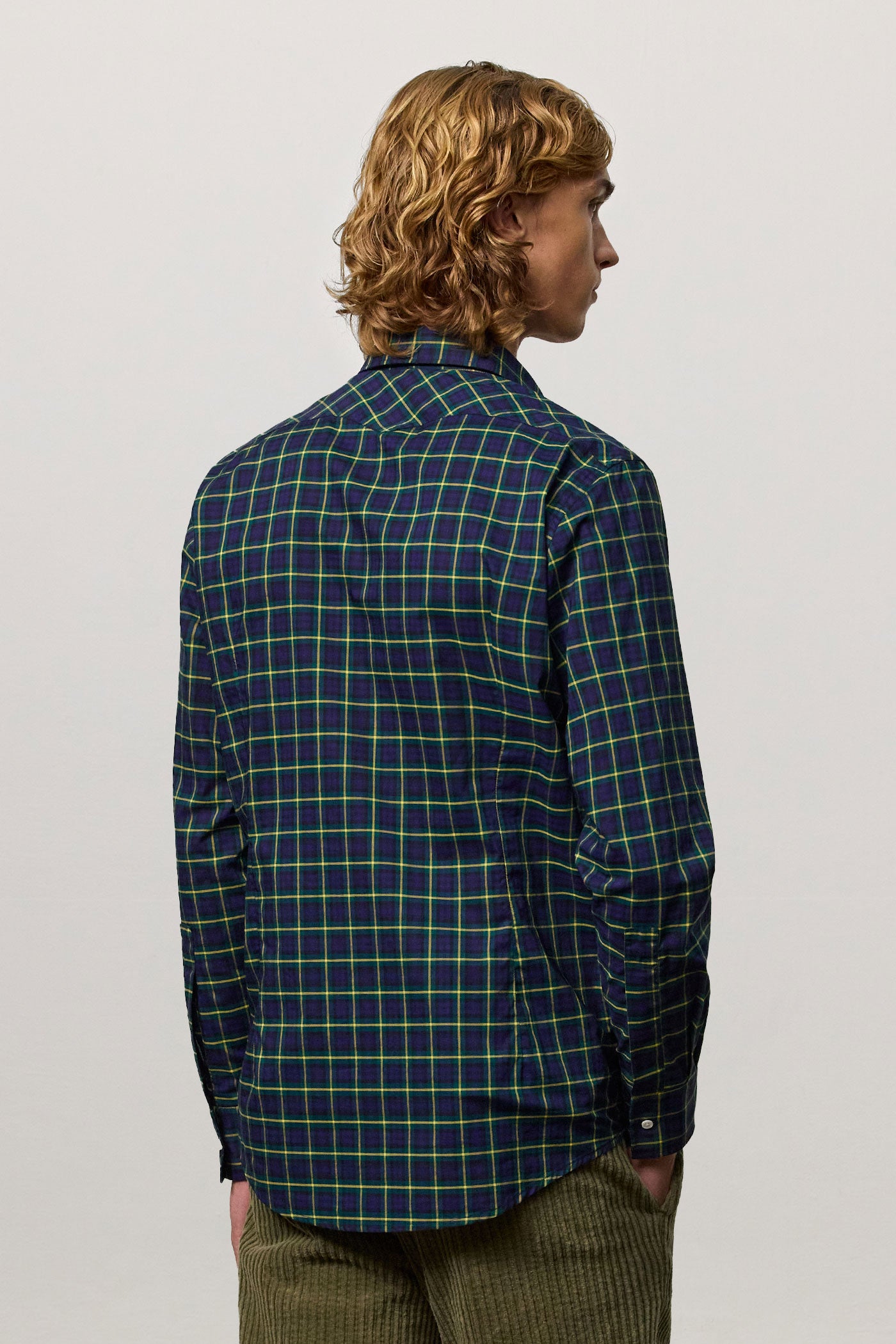 Shirt with classic collar, buttoned chest pockets, pointed yoke, and a small embroidered shield at the front for attaching numbers. Made of pure cotton. Made in Italy.