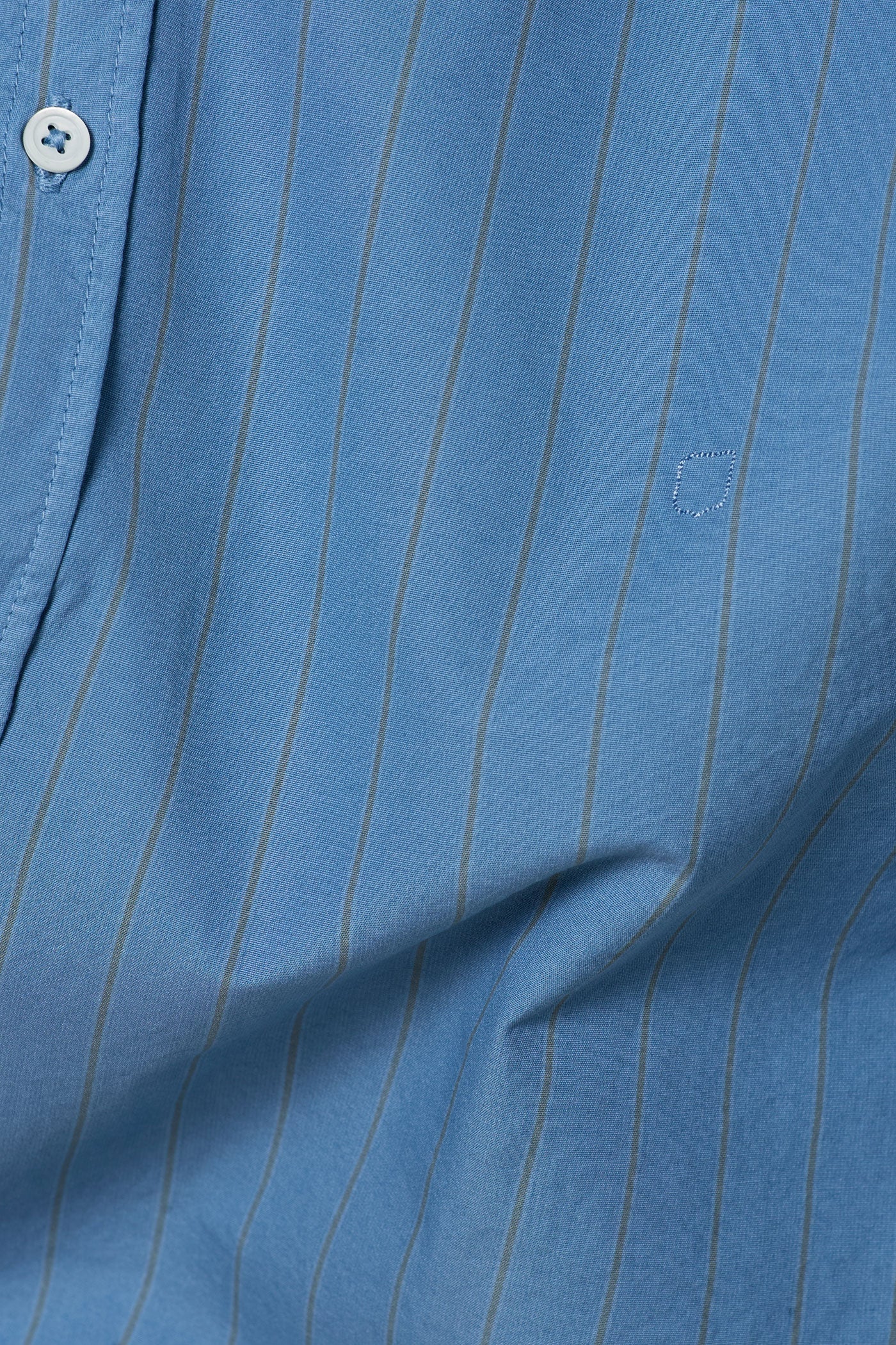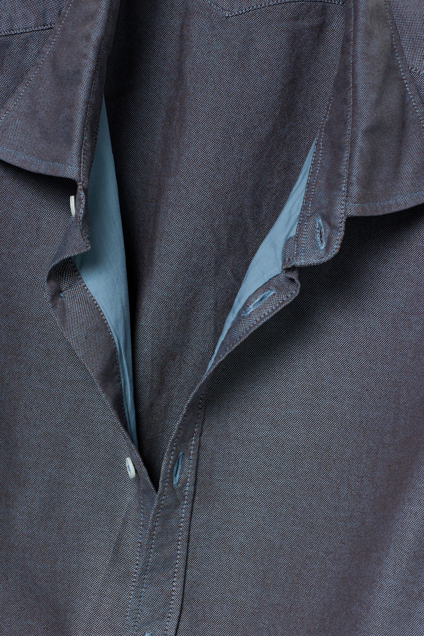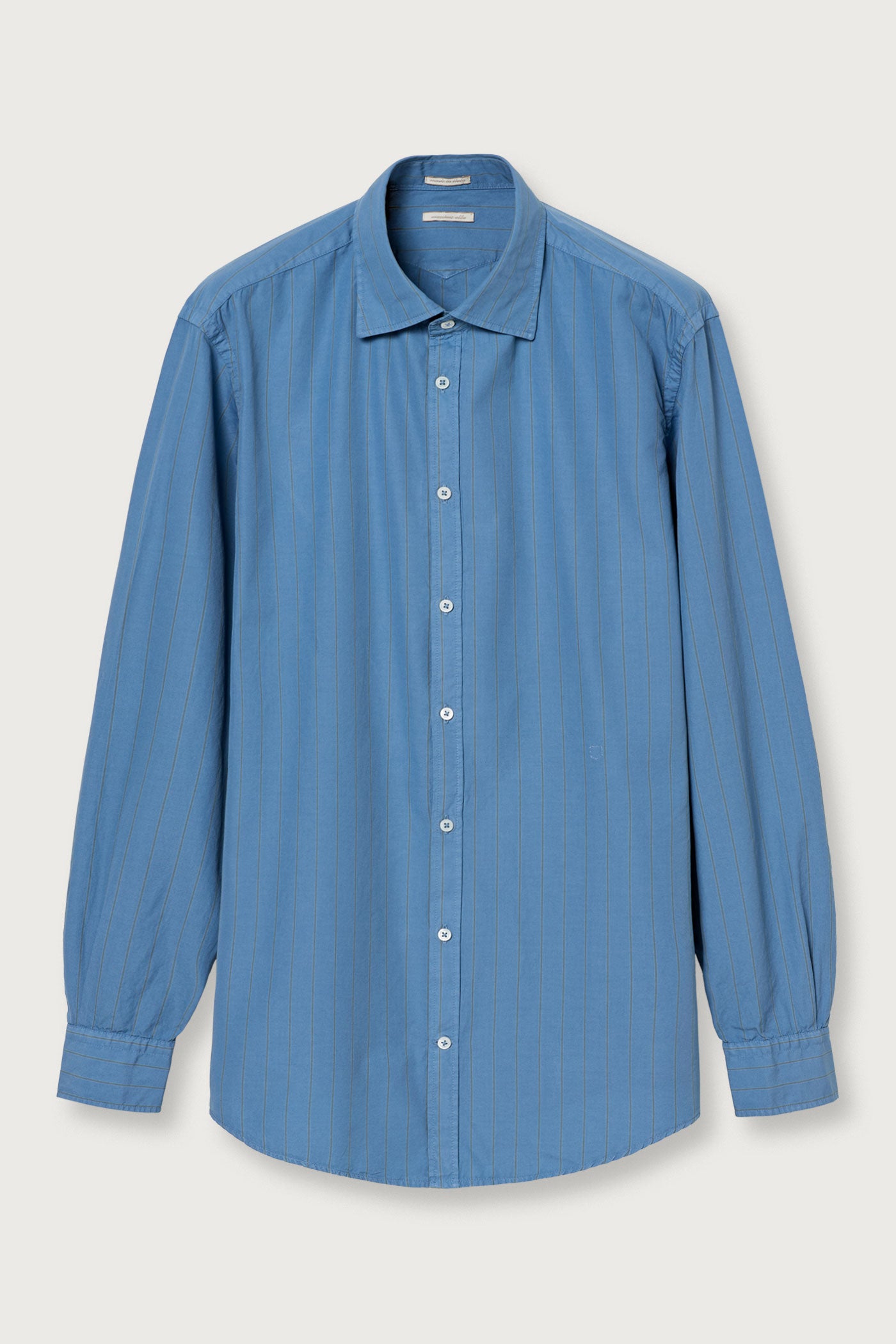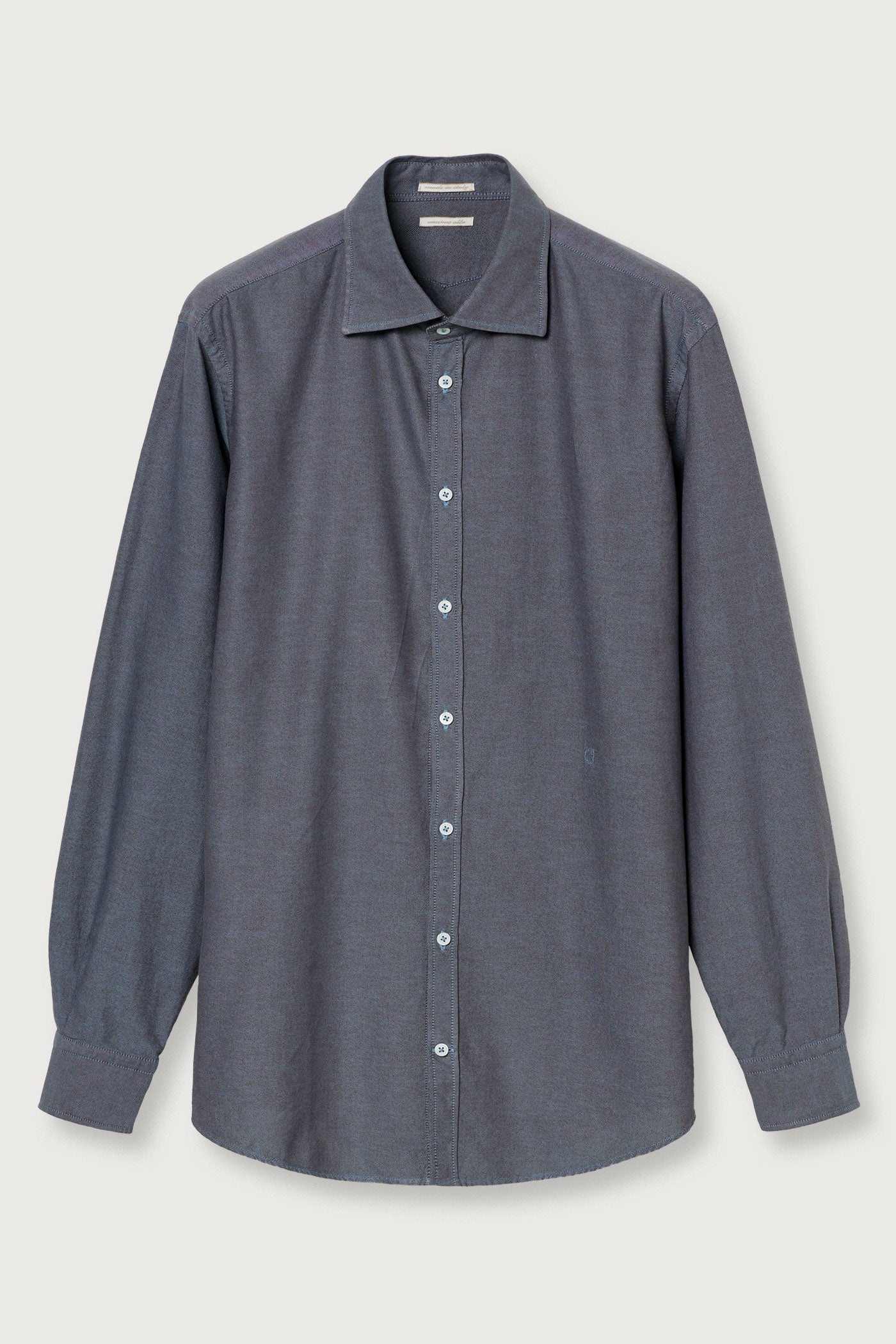 Regular-fit shirt with a pointed collar, classic soft front placket, and a cotton voilè inner bib. Made of watercolor oxford cotton. Features custom badge embroidery for initials and a pointed rear yoke. Made in Italy.