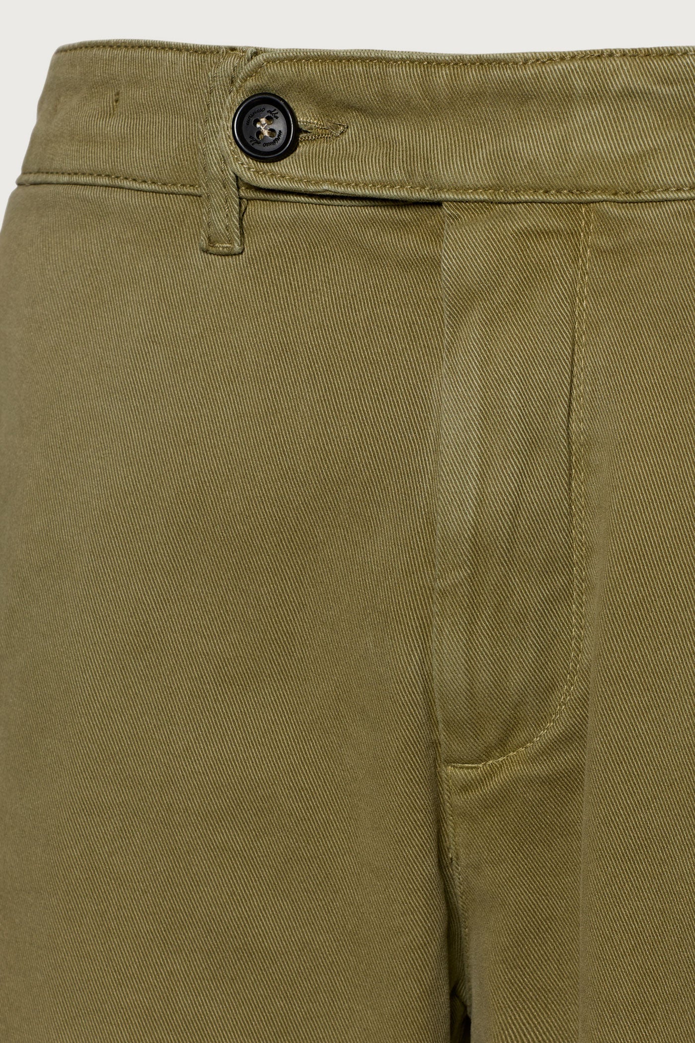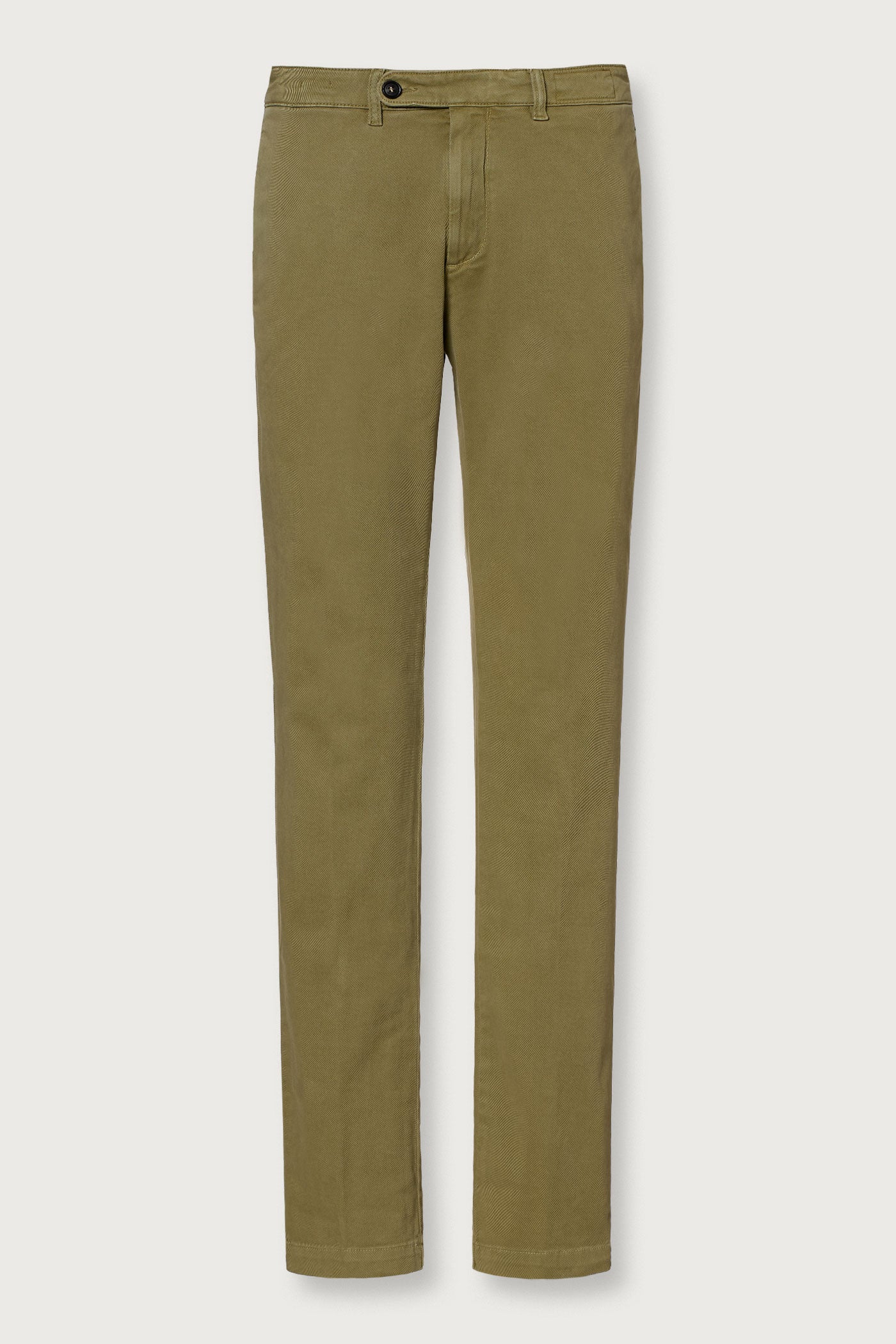 Regular fit flat front trousers. Tab-buttons closure + zip, welt front pockets, rear fillet pockets, 19cm leg opening. Made in comfort cotton twill. Made in Italy.