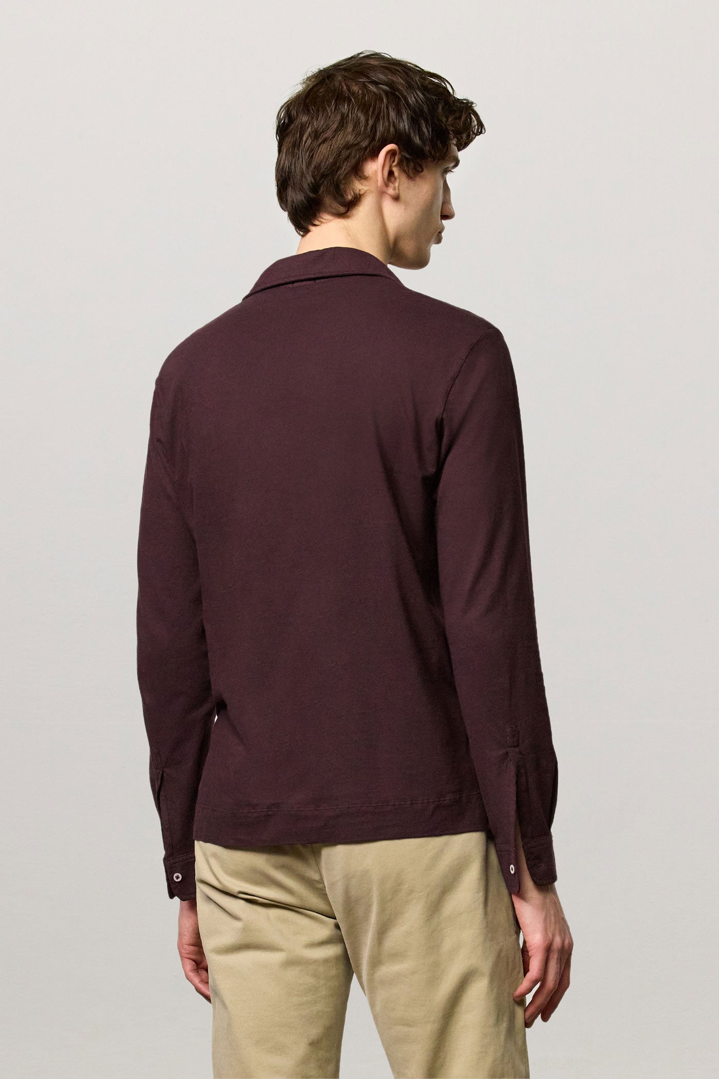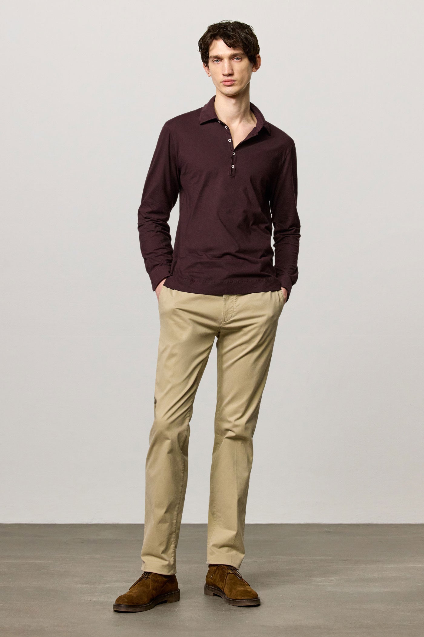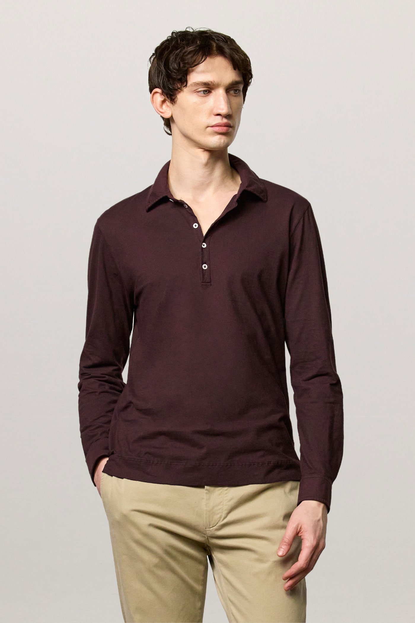 Long-sleeved polo shirt with a regular fit and five-button closure, crafted from watercolor-effect cotton. Finished with a chest pocket and shirt-style cuffs. Made in Italy.