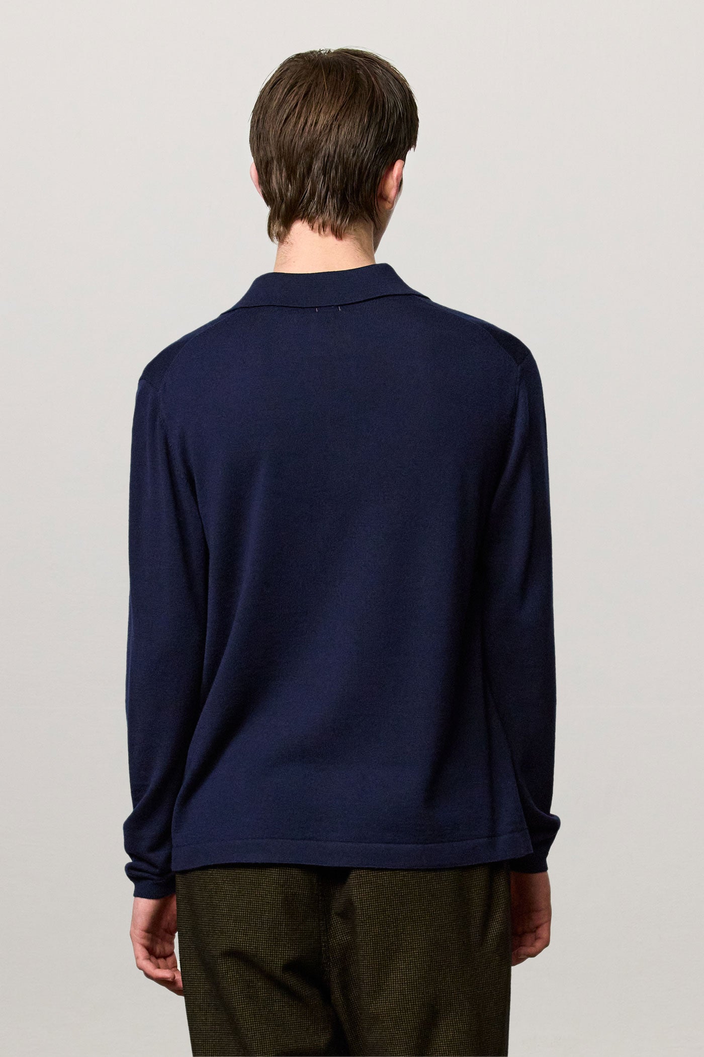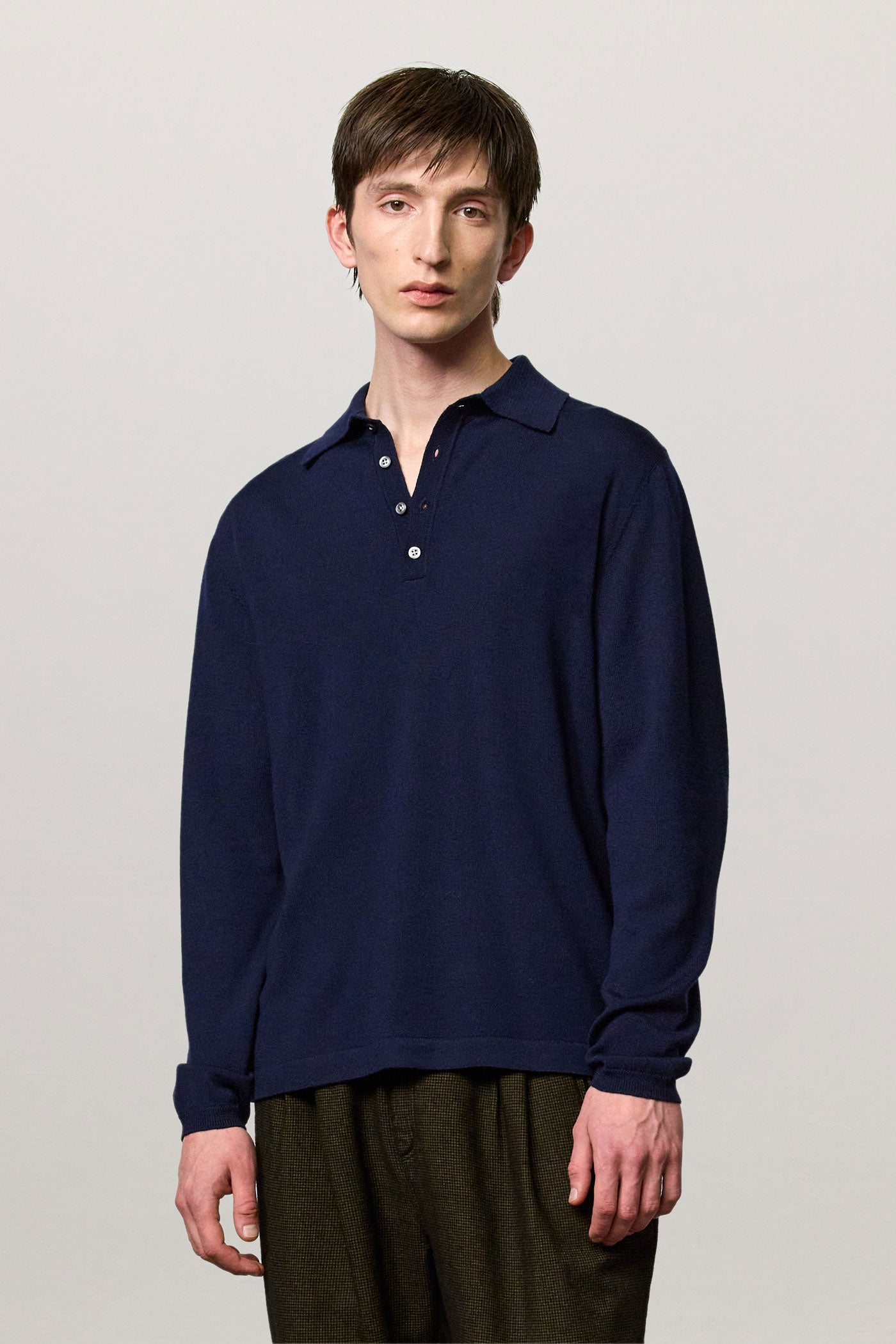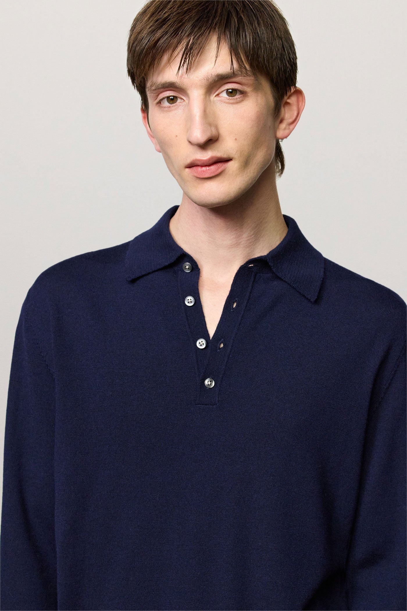 Plain-knit polo shirt with tubular hem and side slits, gathered sleeve cuffs and a regular fit. Crafted from virgin wool. Made in Italy.