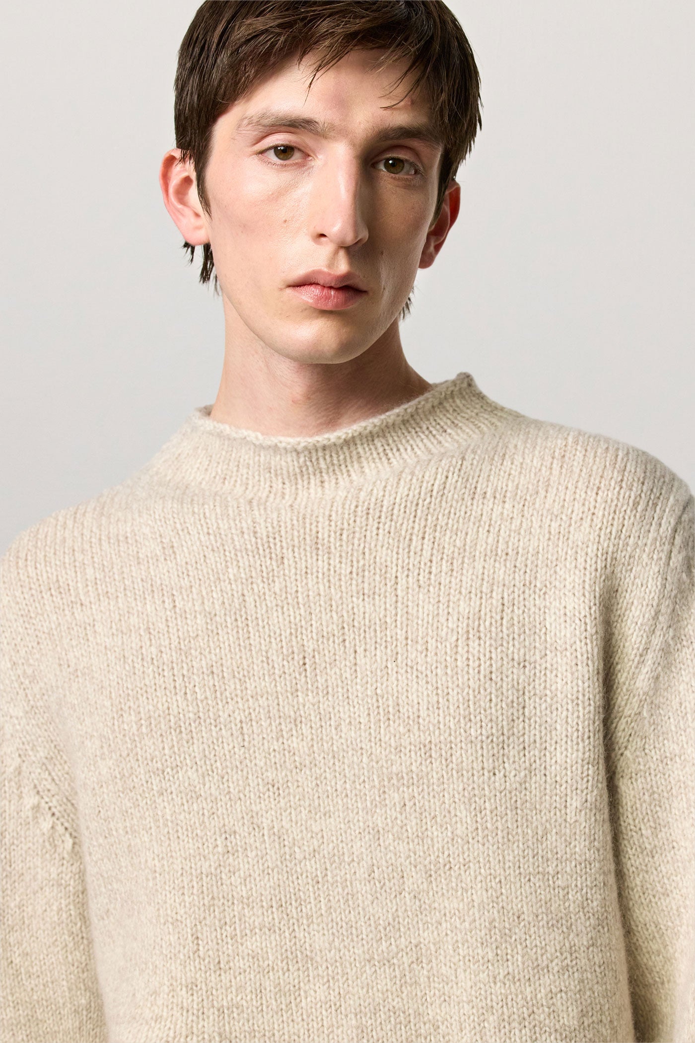 Half-neck sweater in virgin wool and cashmere with two-tone yarns. Made in Italy.