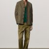 Regular-fit single-breasted jacket with a stand-up collar, patch pockets, side slits, and five horn buttons. Made in pied-de-poule fabric in virgin wool and cotton. Made in Italy.
