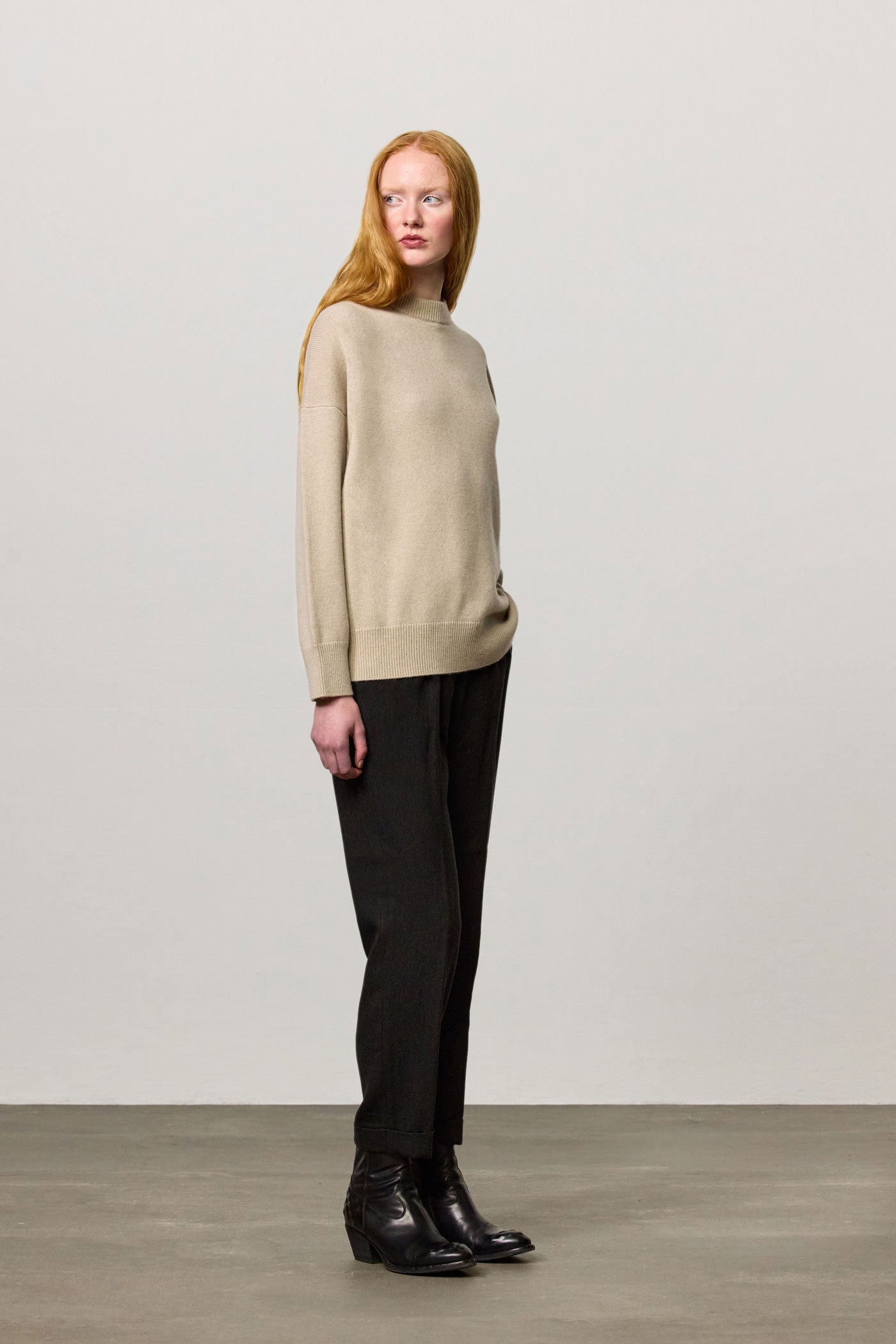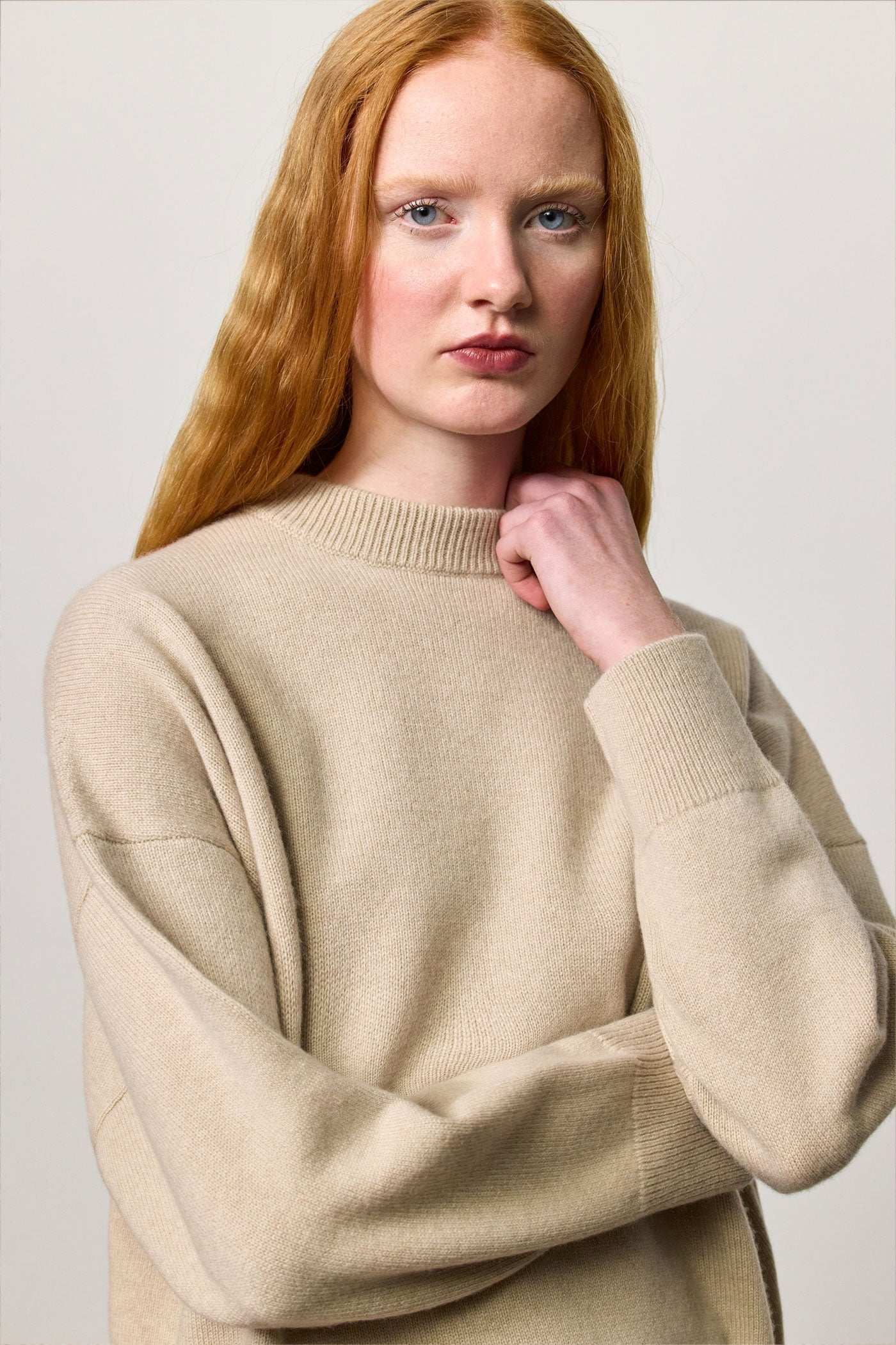 Crew-neck sweater in plain knit with an oversized fit, dropped shoulders and flat ribbed trims. Crafted from two-ply combed cashmere. Made in Italy.