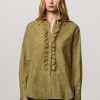 Comfort shirt with front ruffle and pointed rear yoke. Made of exclusive print cotton cashmere. Made in Italy.