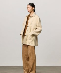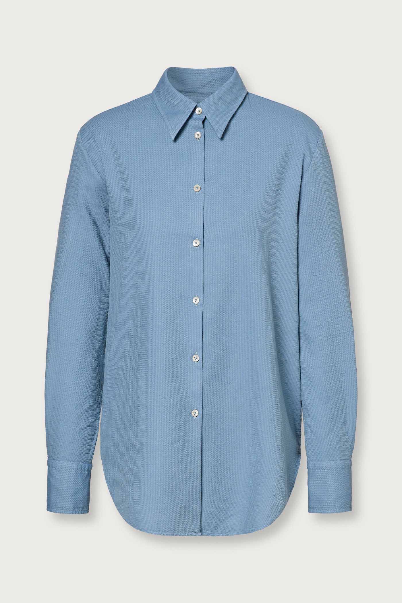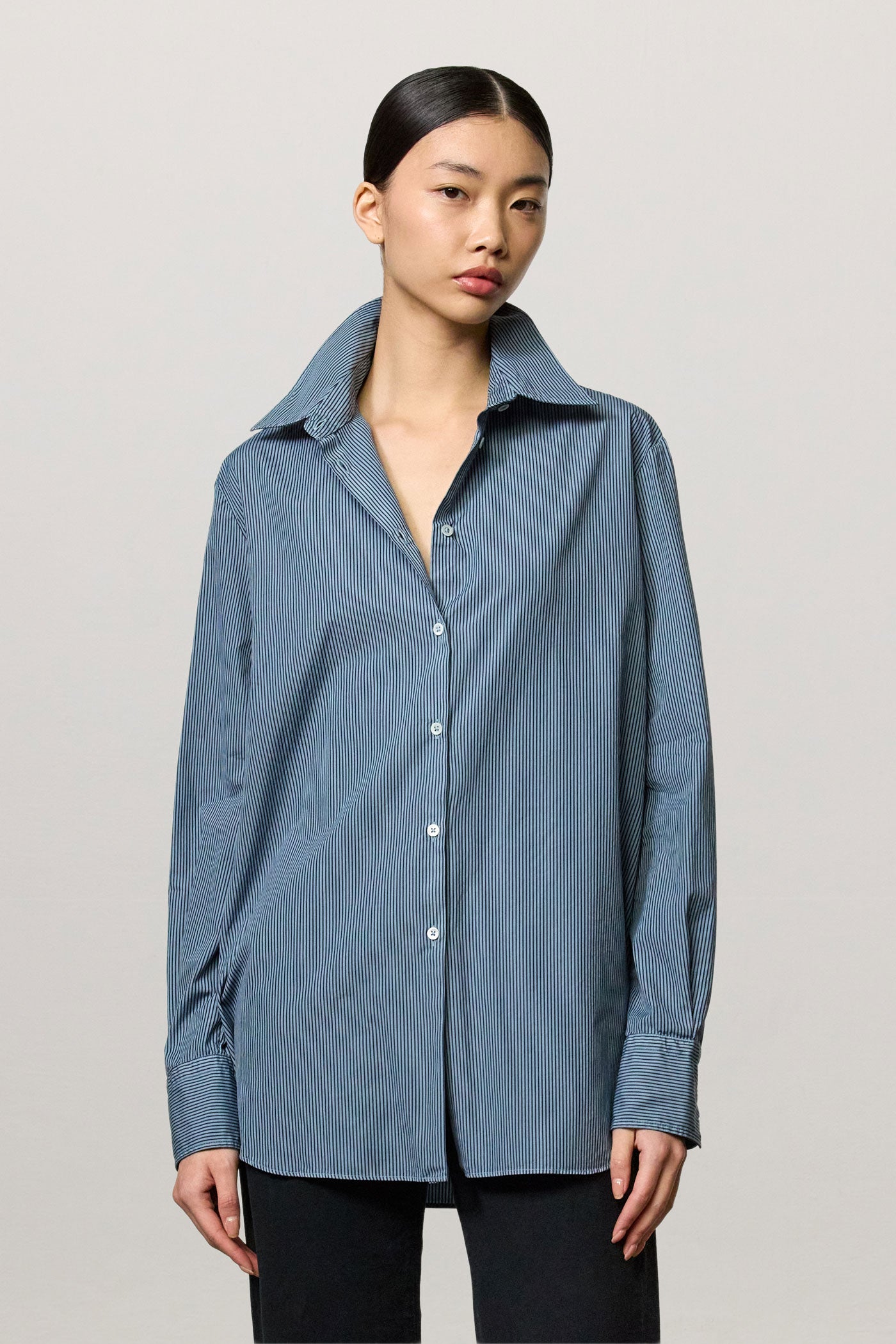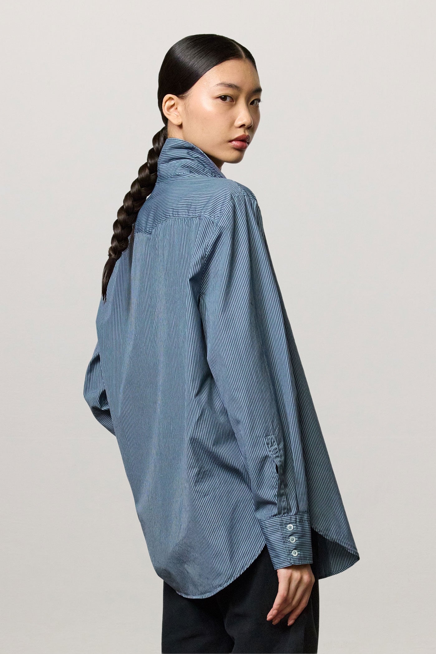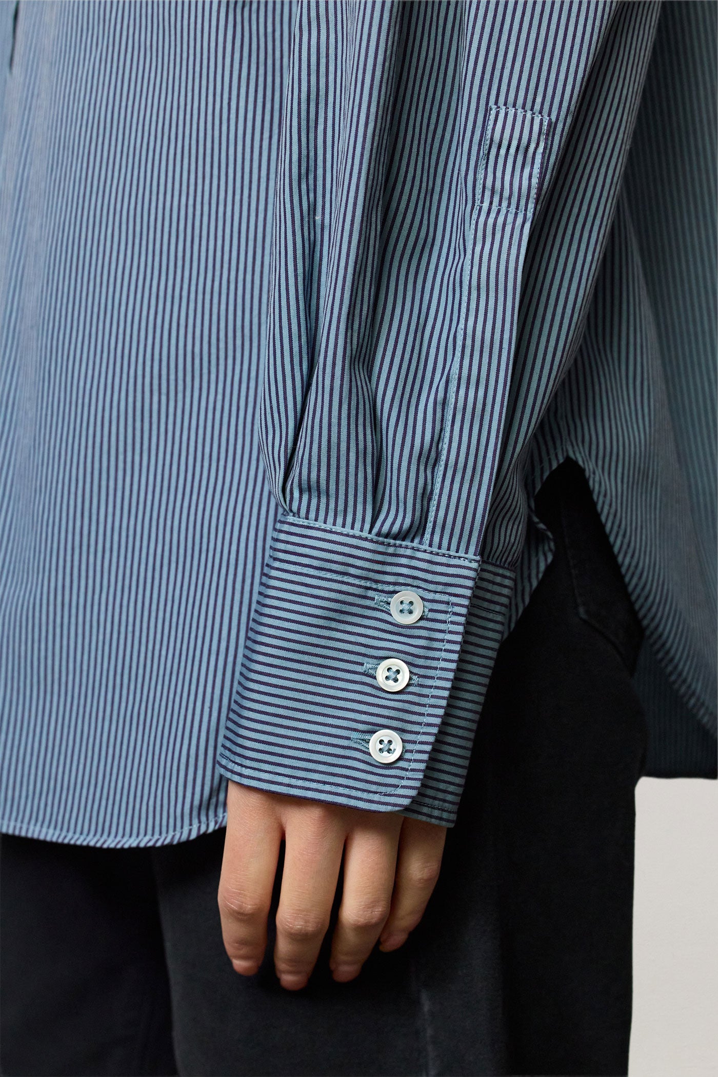 Relaxed-fit shirt with pointed collar, back yoke and no front placket. Crafted from bi-colour striped cotton fabric with a watercolor effect. Made in Italy.