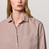 Classic collar shirt with chest pocket, pointed collar stand, small embroidered shield on the front for adding numbers, made in micro check watercolor cotton. Made in Italy.