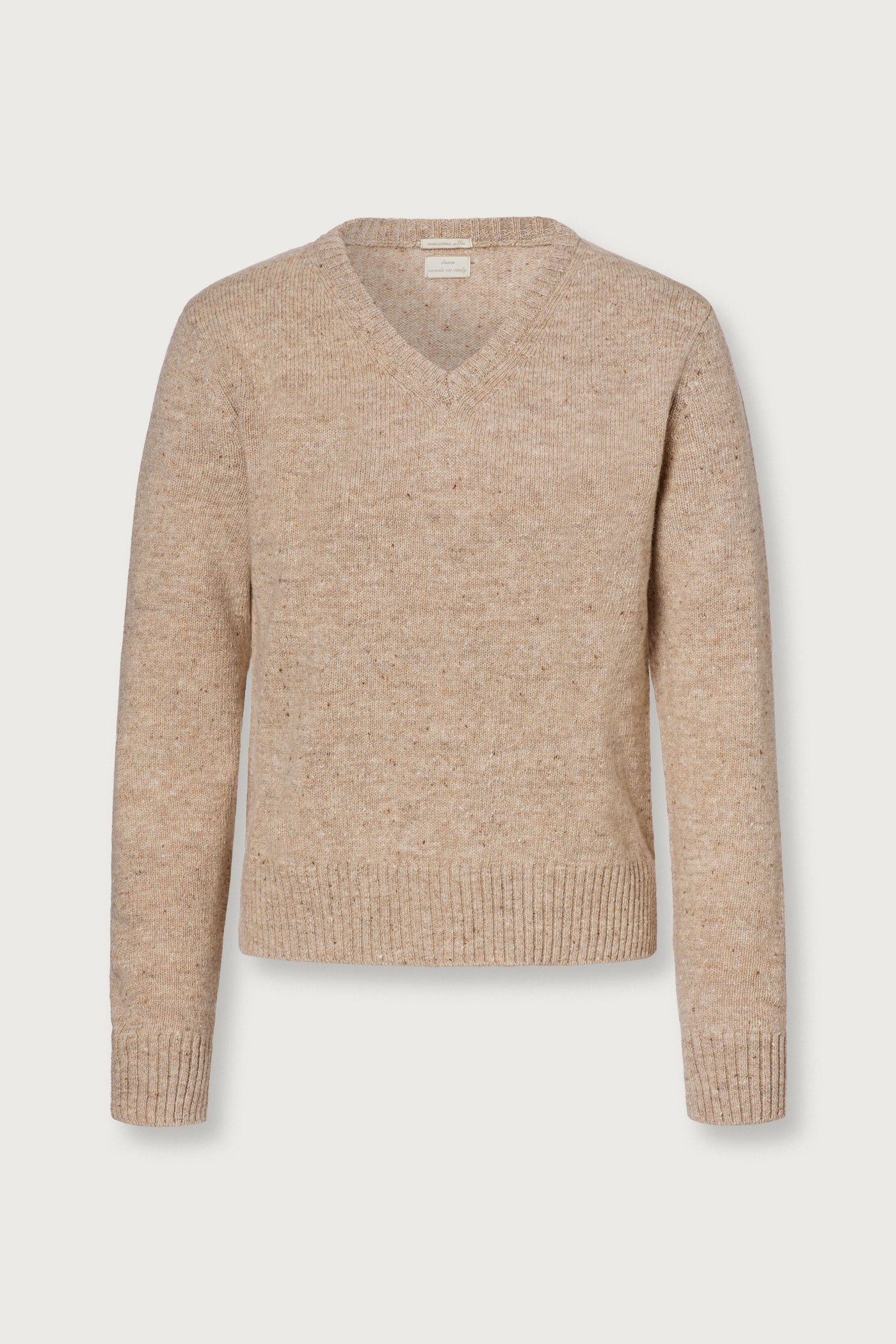 Regular-fit v-neck sweater with ribbed edges, and side slits. Made from soft virgin Shetland wool. Made in Italy.